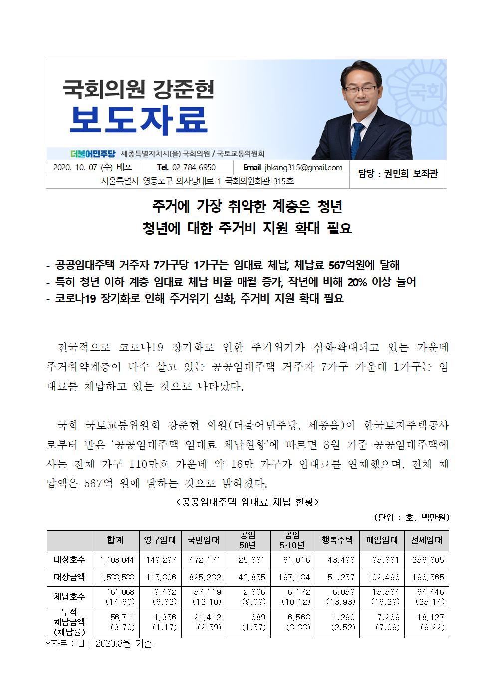 201007_강준현국정감사보도자료_주거에_가장_취약한_계층은_청년,_주거비_지원_확대_필요.hwp