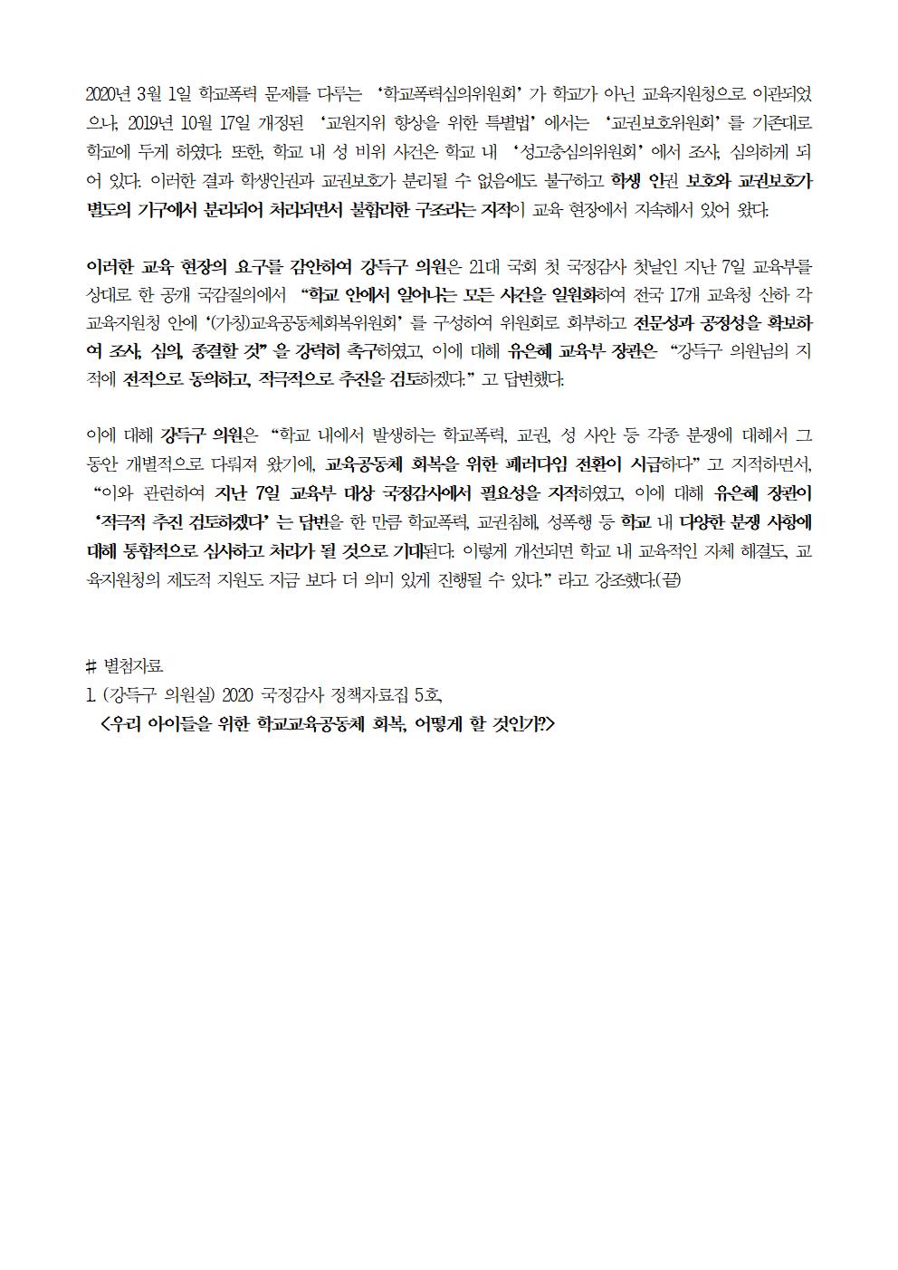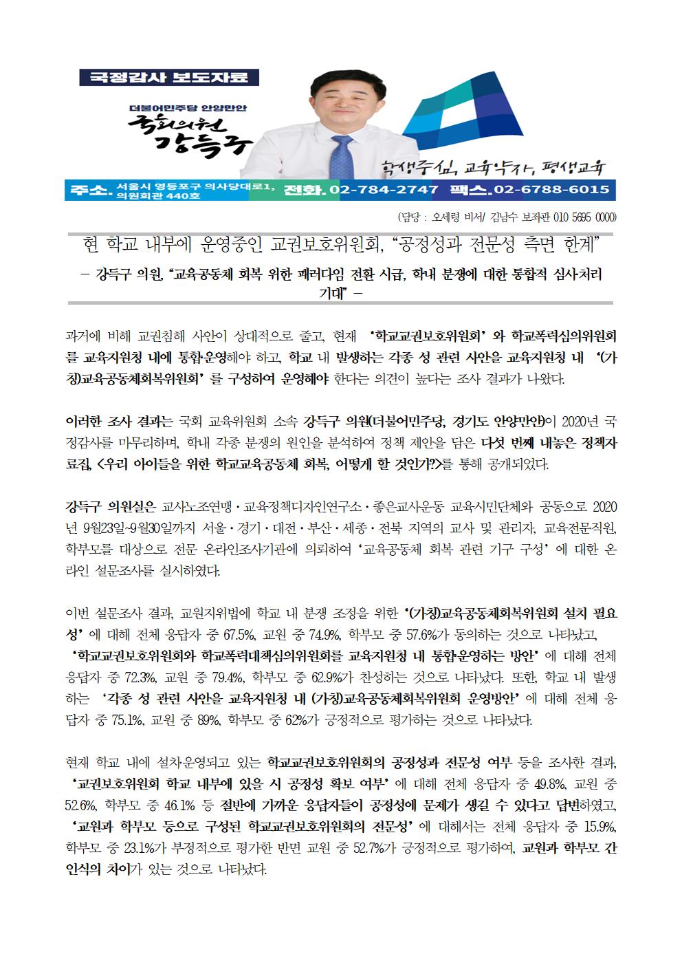 [국회의원 강득구]현 학교 내부에 운영중인 교권보호위원회, "공정성과 전문성 측면 한계"