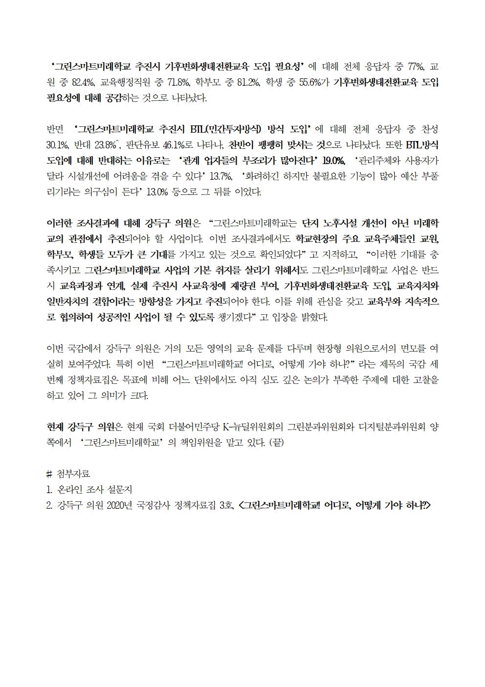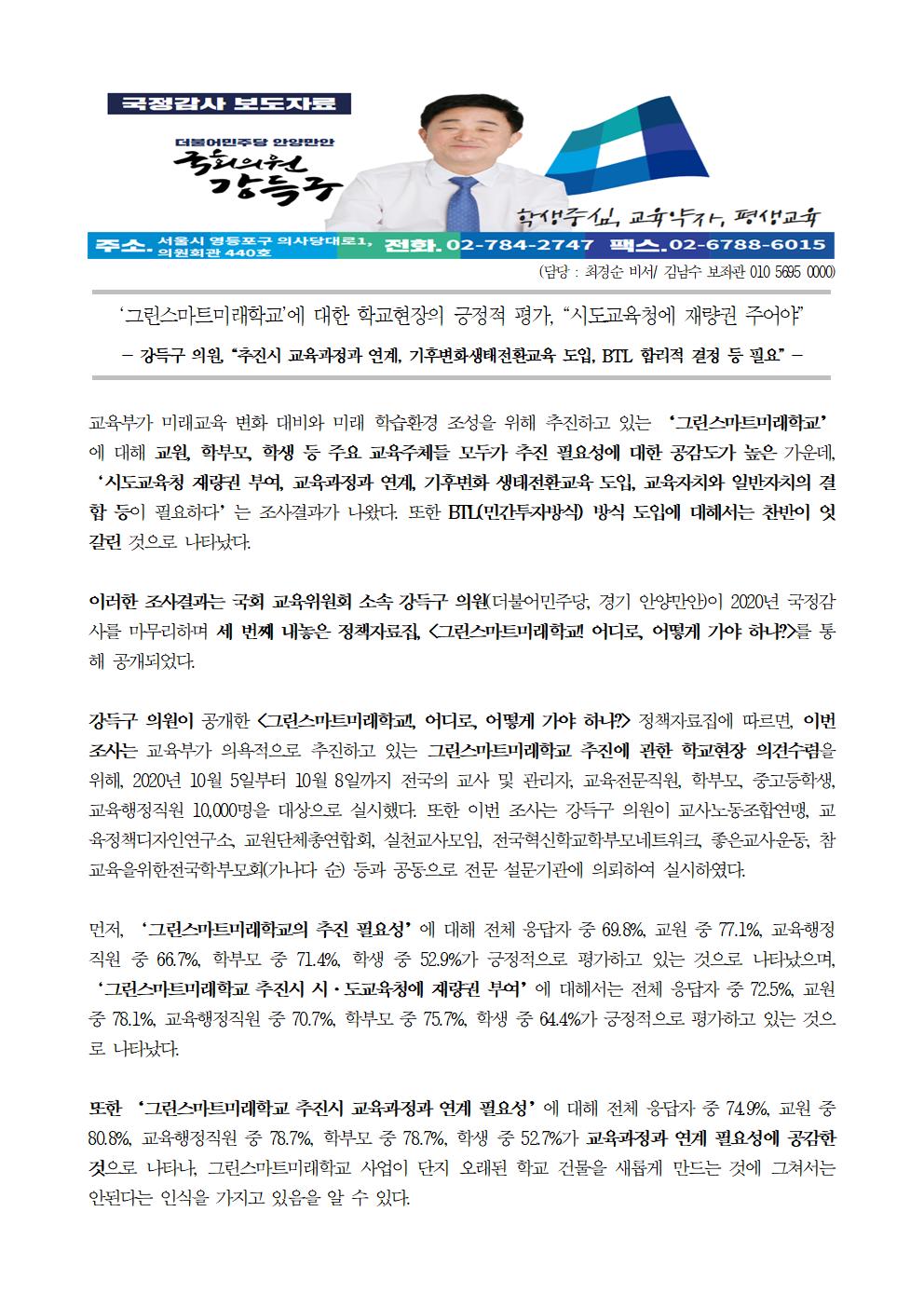 [국회의원 강득구]'그린스마트미래학교'에 대한 학교 현장의 긍정적 평가, "시도교육청에 재량권 주어야"