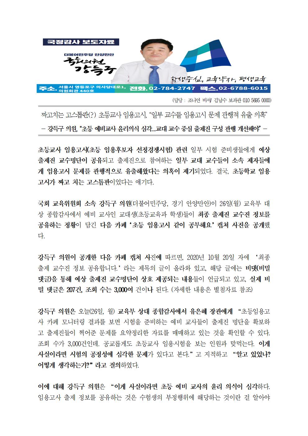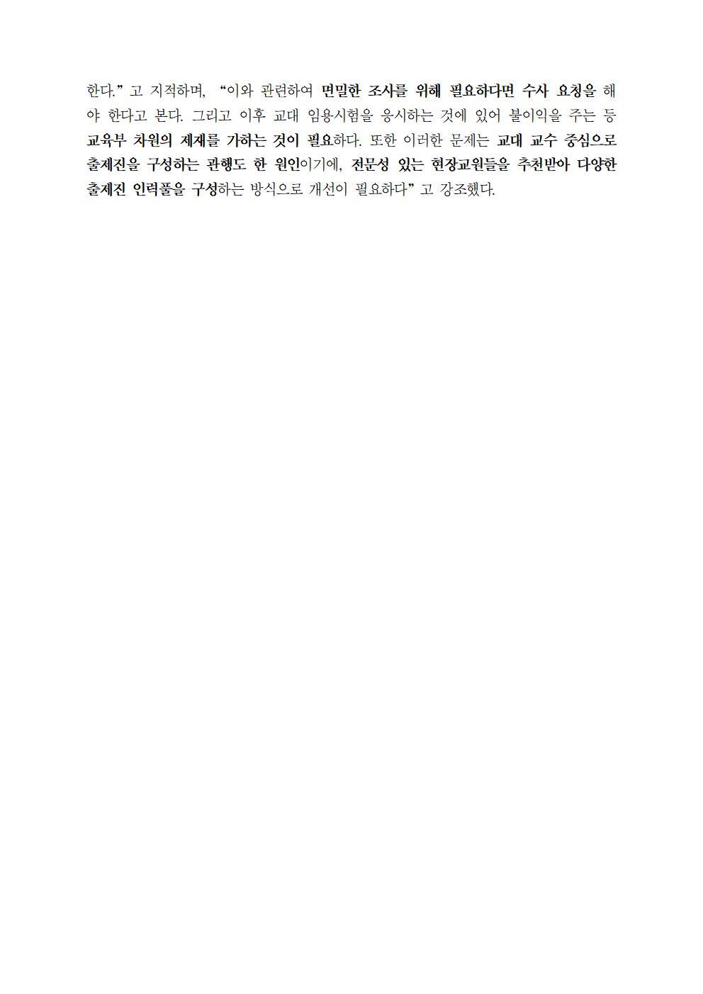 국정감사+보도자료+제48호+짜고치는+고스톱판,+초등교사+임용고시,+“일부+교수들+임용고시+문제+관행적+유출+의혹.hwp