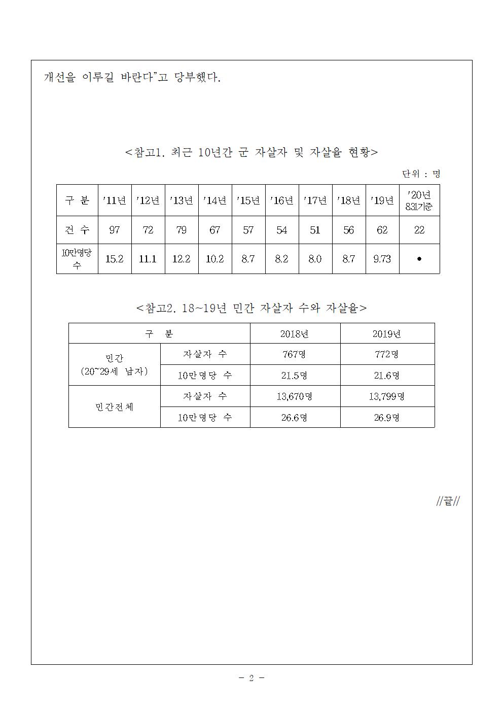 [국회의원 김병기] 군인 자살률 꾸준한 감소세