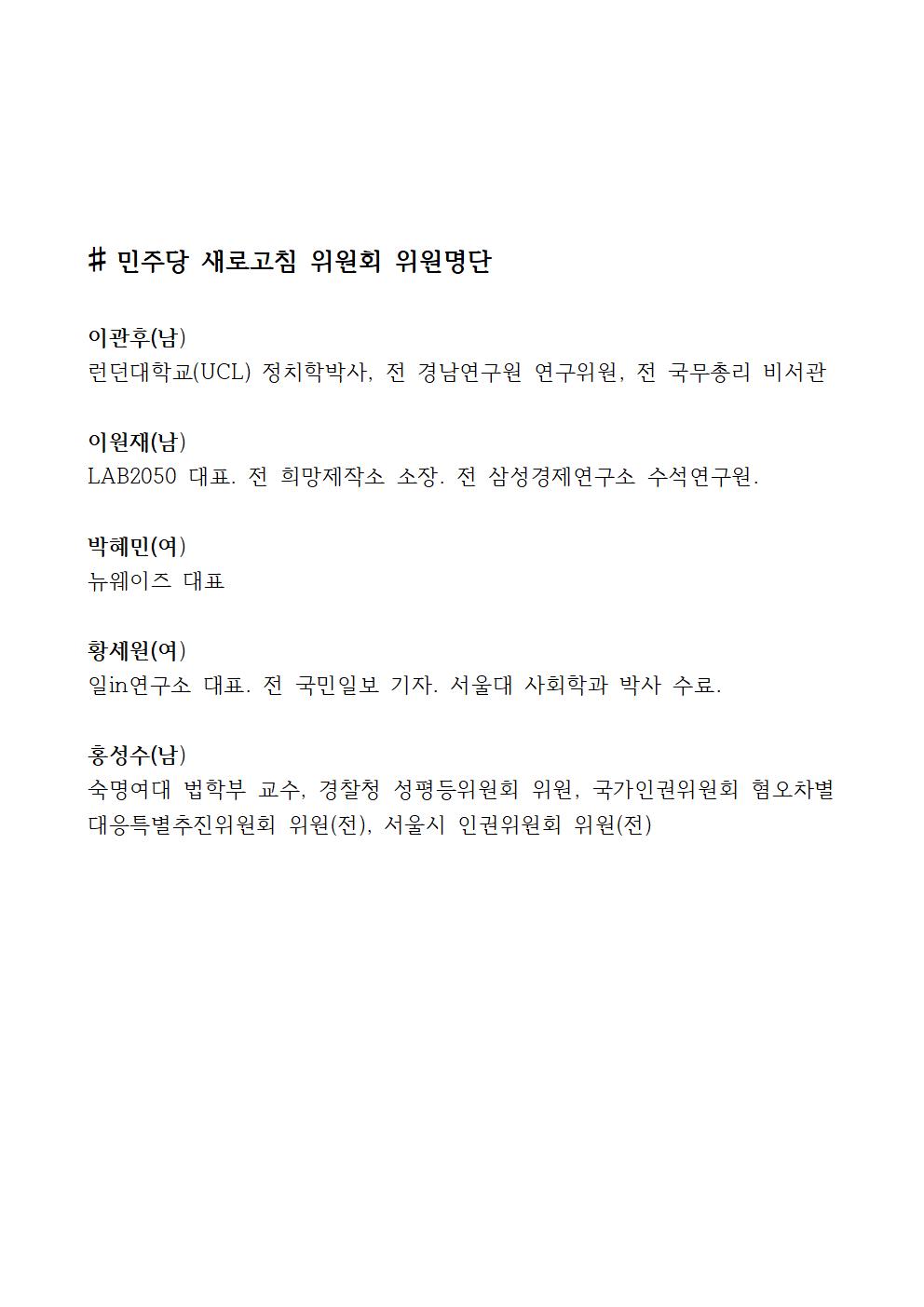 [보도자료] 더불어민주당 새로고침위원회, 비대위 간담회 개최