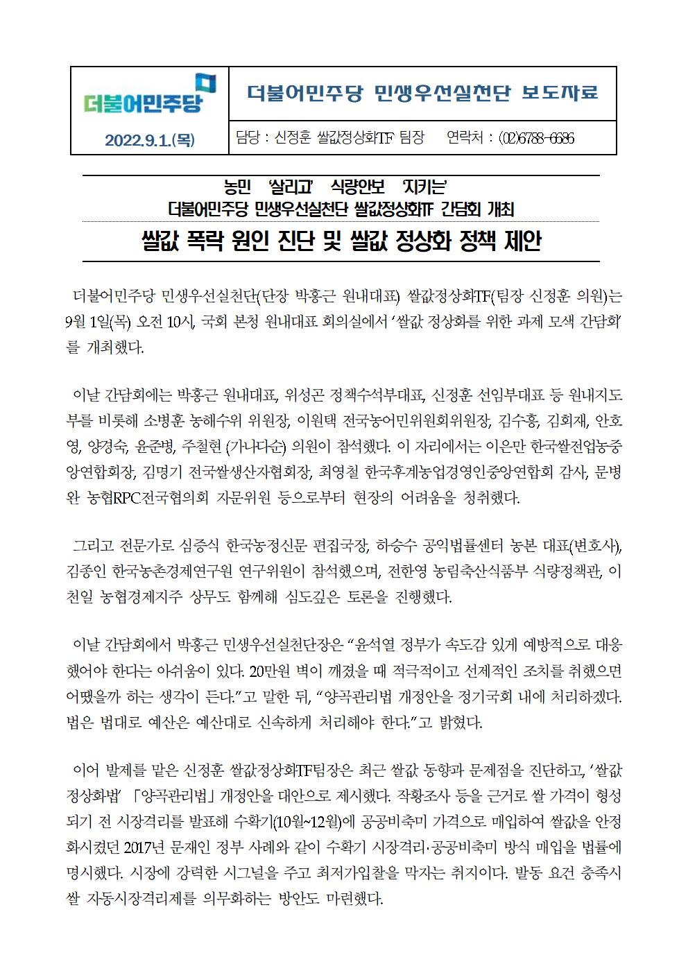 220901_보도자료_쌀값정상화TF_간담회_개최_쌀값_폭락_원인_진단_및_쌀값_정상화_정책_제안.hwp