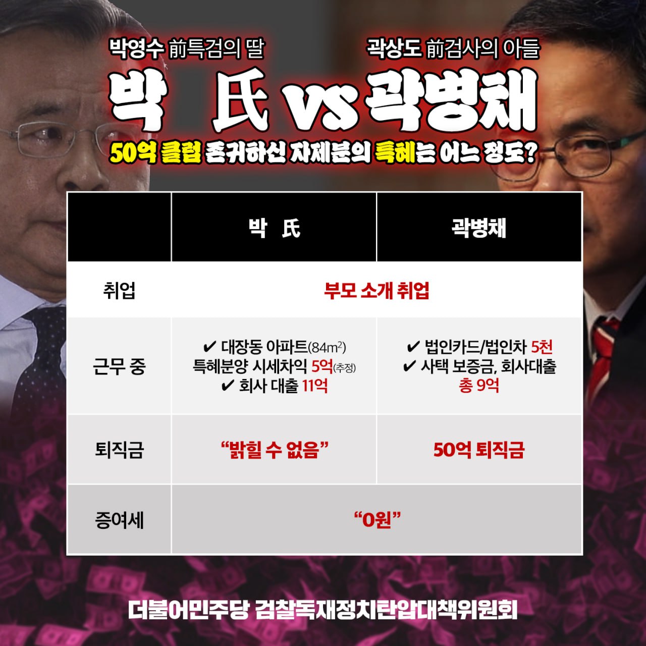 [입장문] 더불어민주당 검찰독재정치탄압대책위원회, 「곽병채와 검찰왕국 ②」 50억 클럽 아들딸의 특혜 앞에서 무뎌지는 검찰의 칼날. 박영수 前특검 딸 앞에서는 불공정이 상식입니까