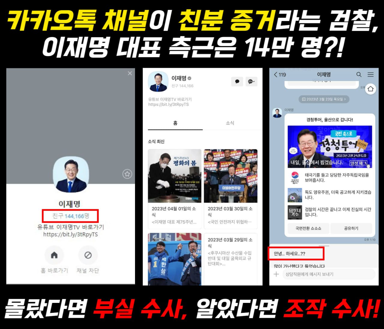 검찰이 증거로 제시한 카카오톡 대화방도 마찬가지입니다개인적인 카카오톡 대화방이 아니라현재 144166명이 가입되어 있는 공식 홍보 채널입니다.