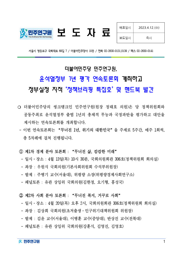 최종_230412_보도자료_민주연구원,_윤석열정부_1년_평가_연속토론회,_정책브리핑_특집호_및_핸드북.pdf