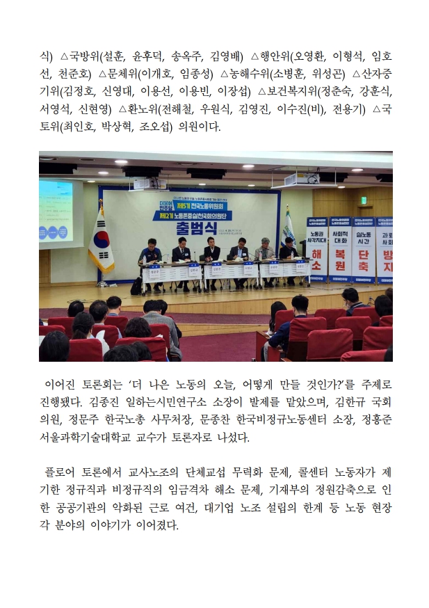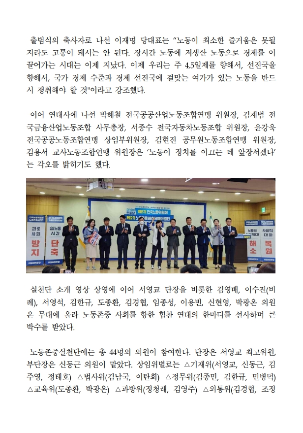 [보도자료] 더불어민주당 노동존중실천국회의원단, 더불어민주당 제2기 노동존중실천단 출범