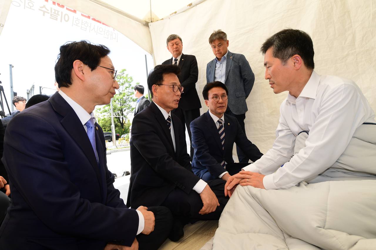 박 원내대표는 이날 단식 중인 이필수 대한의사협회 회장을 만나 위로하면서 "여러 의료단체들이 제기하는 현안들에 대해 민주당은 열린 마음을 가지고 지속적으로 대화하고 협력해 나가겠다"고 대화 의지를 밝혔습니다.