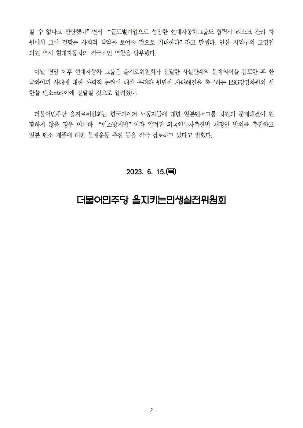 230615_(보도자료)_을지로위원회_한국와이퍼_관련_현대자동차그룹_비공개_면담_진행_fn3085.hwp