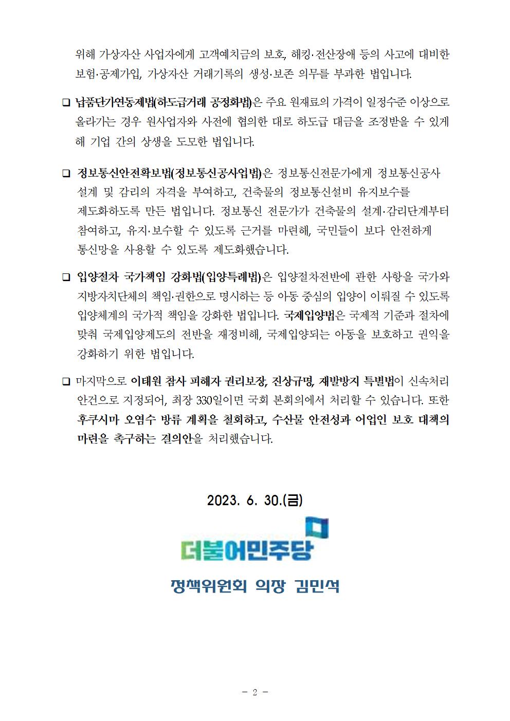 [보도자료] 더불어민주당 정책위원회 6월 임시국회 입법성과