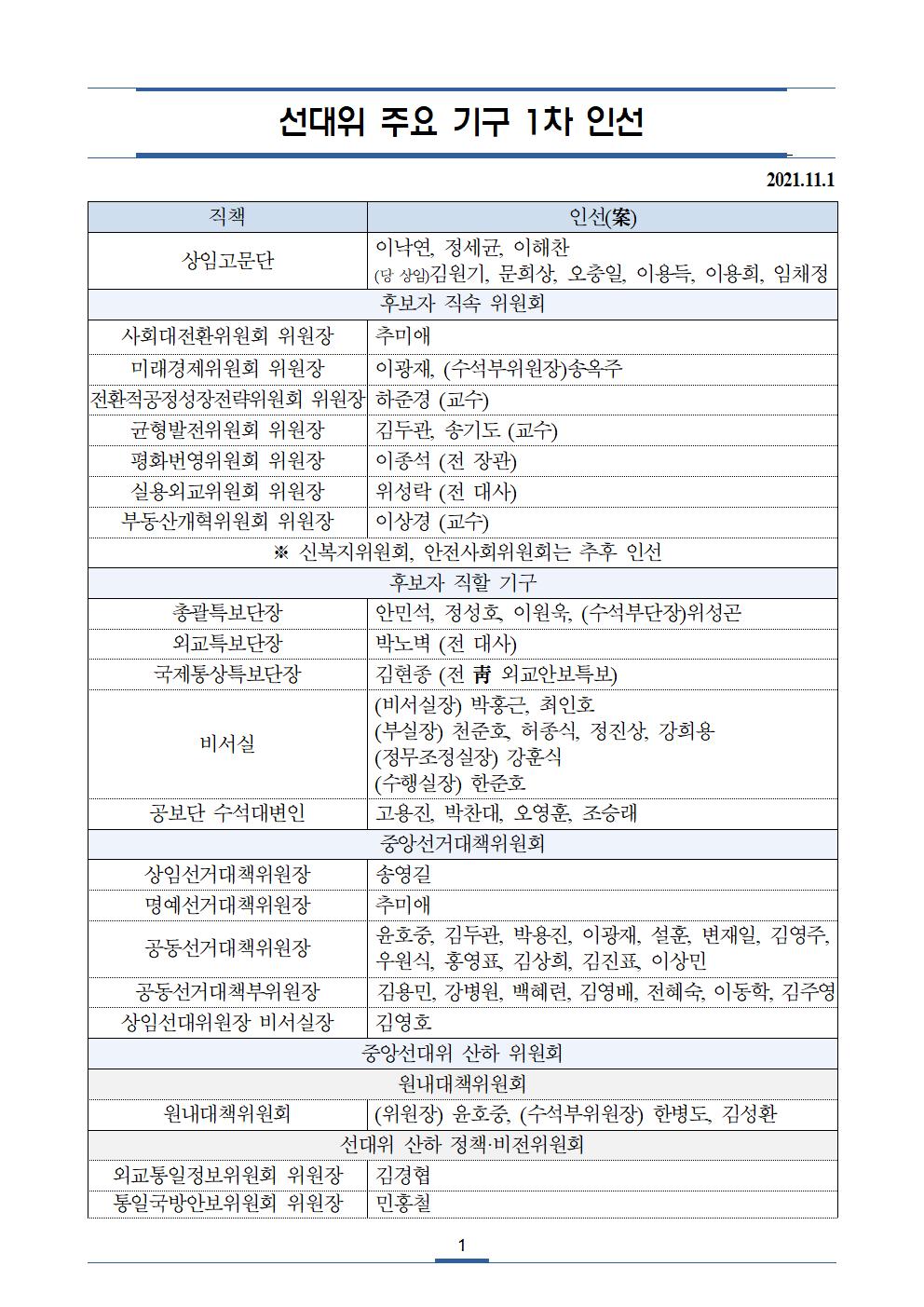 더불어민주당 대한민국 대전환 제20대 대통령선거 선거대책위원회 1차 인선
