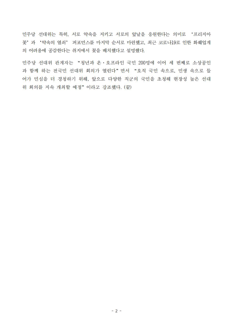 [보도자료] 더불어민주당 선대위 전략기획본부, 소상공인과 함께 하는 전국민 선대위 회의 개최