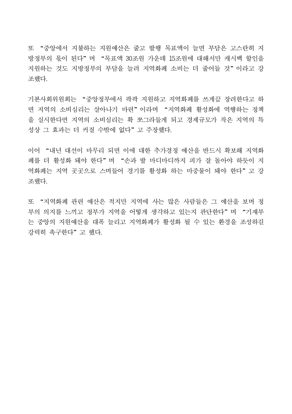 [보도자료] 더불어민주당 선대위 기본사회위원회, 22년 지역화폐 예산 축소 문제 지적 성명서 발표