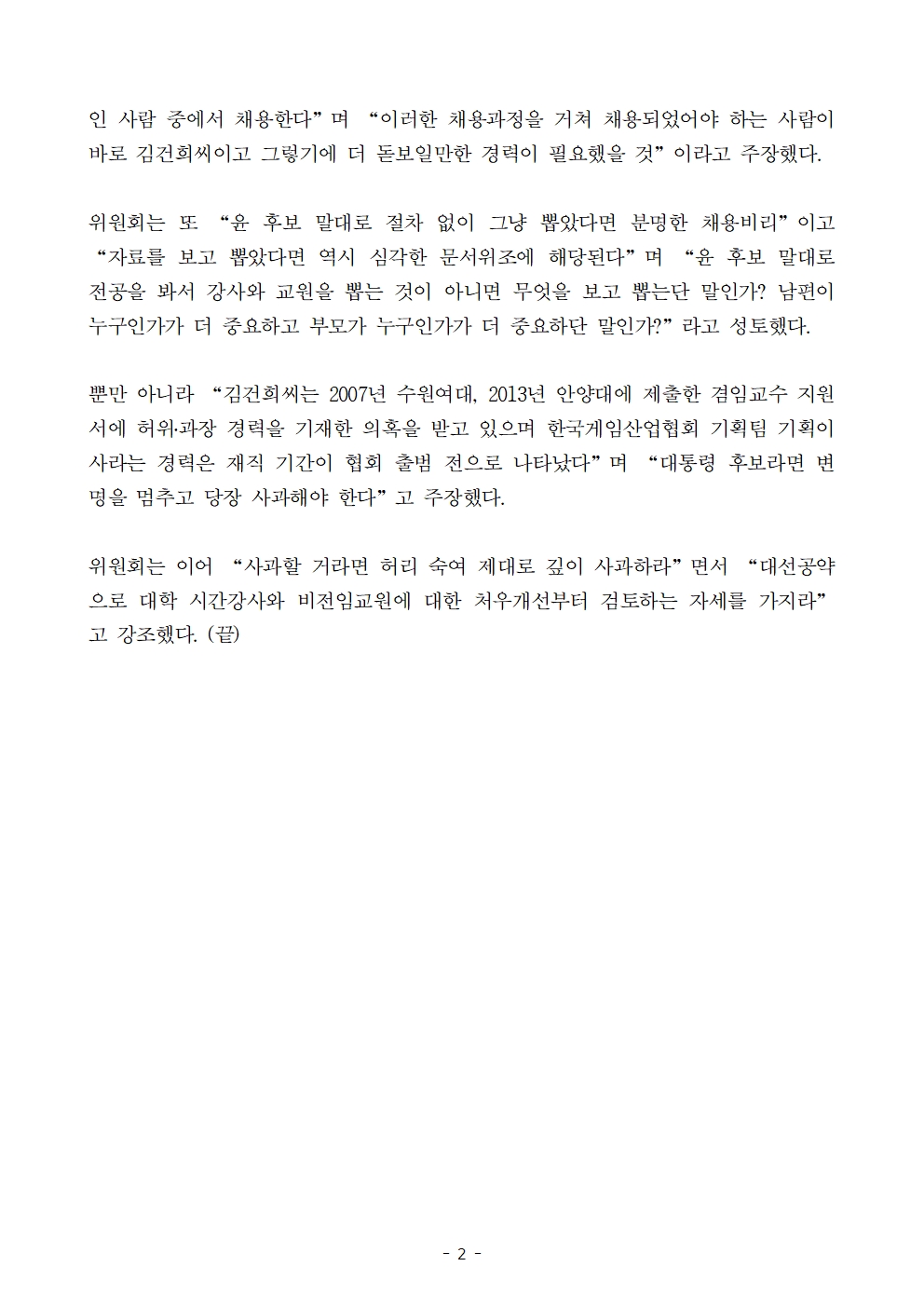 [보도자료] 더불어민주당 선대위 기본사회위원회, 윤석열 후보 시간강사 발언 규탄 성명 발표