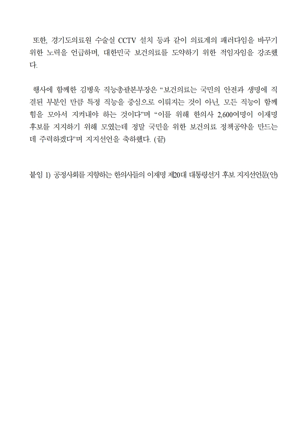[보도자료] 한의사 2,600여명 이재명 후보 지지선언