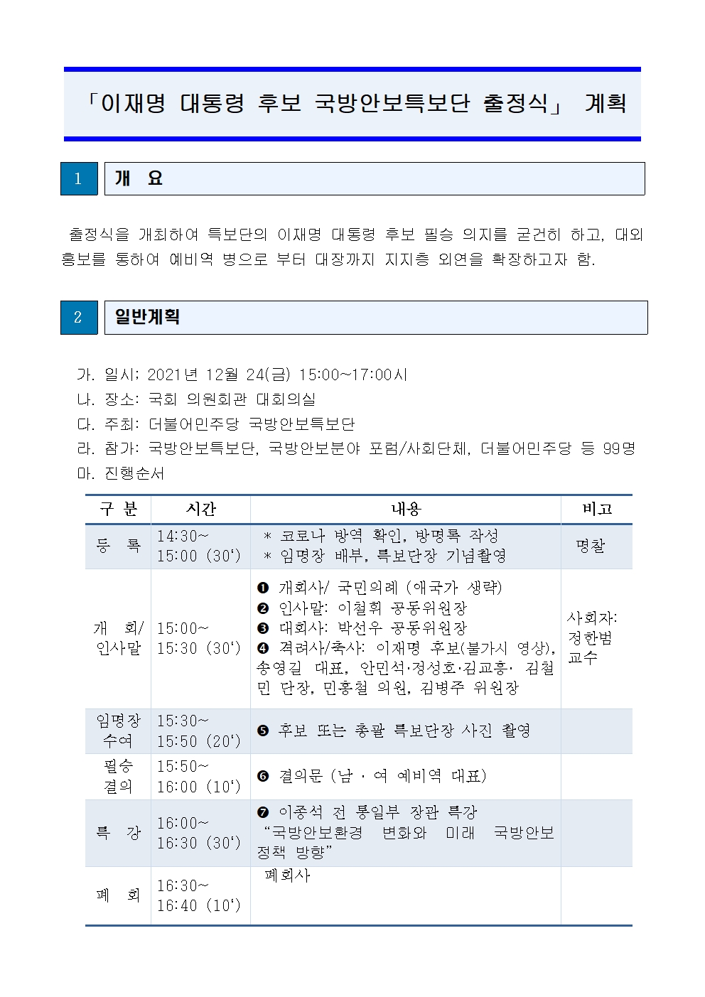 [보도자료] 더불어민주당 국방안보특보단, 출정식 개최