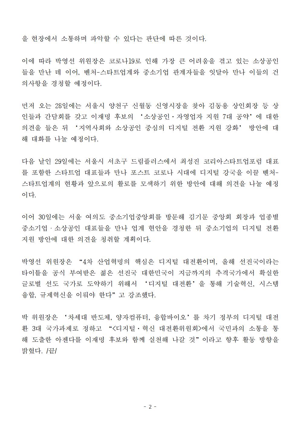[보도자료] 더불어민주당 선대위 디지털·혁신 대전환위원회_ 현장 간담회 개최