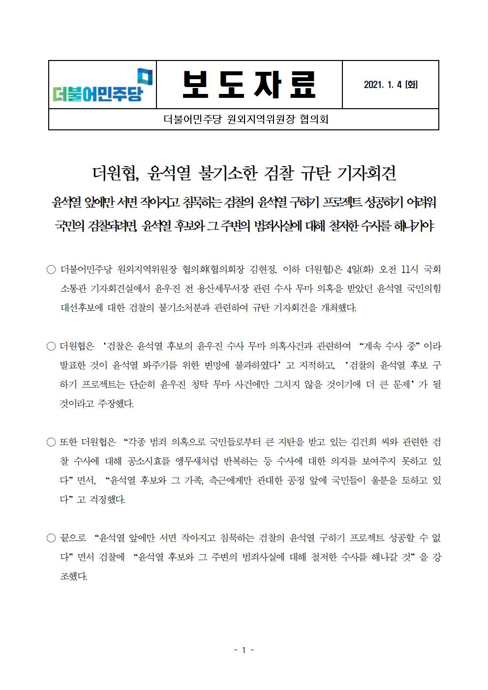 [보도자료] 더불어민주당 원외지역위원장 협의회 윤석열 불기소 규탄 기자회견