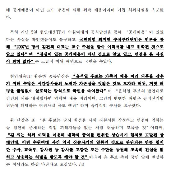 [보도자료] 김건희 씨 수원여대 임용 당시 면접자 3명 공식 확인