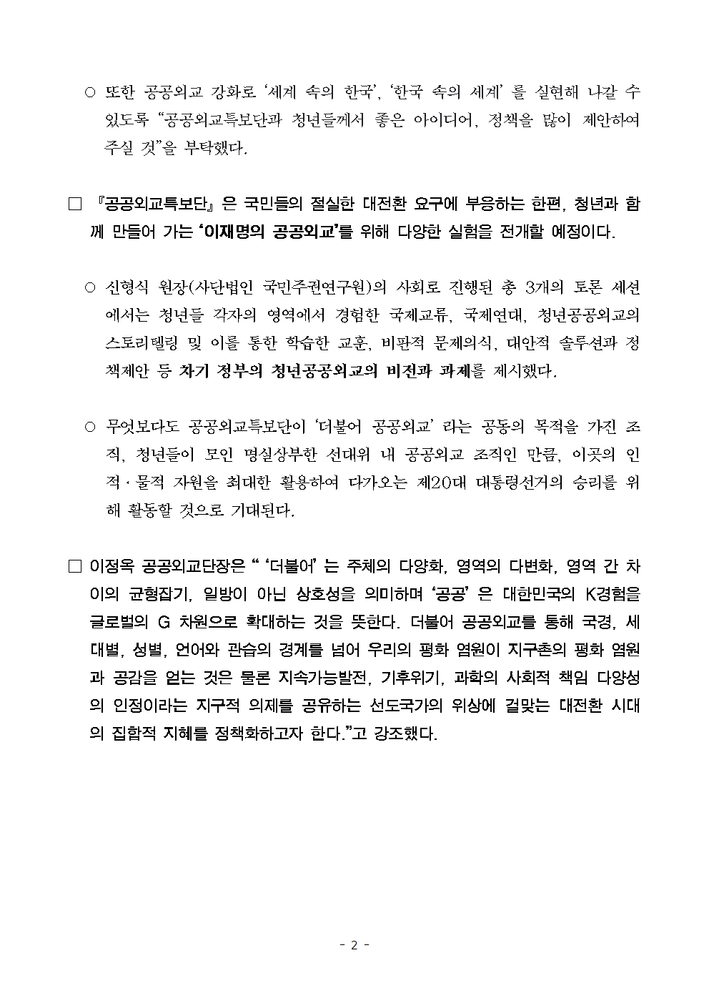 [보도자료] 더불어민주당 선대위 총괄특보단 산하 공공외교특보단 출범