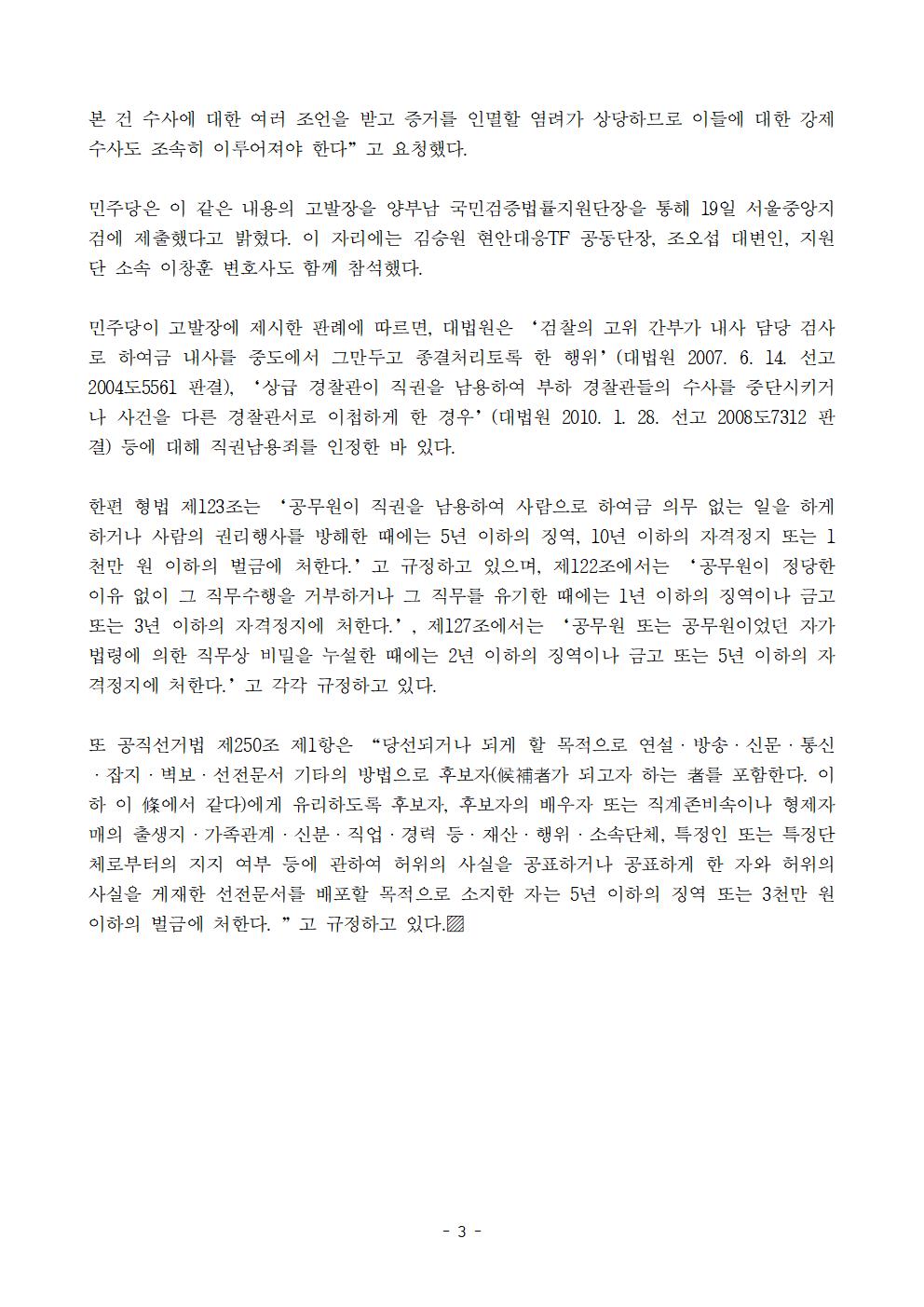 [보도자료] 더불어민주당 선거대책위원회 국민검증법률지원단 윤석열 후보 직권남용협의 검찰 고발