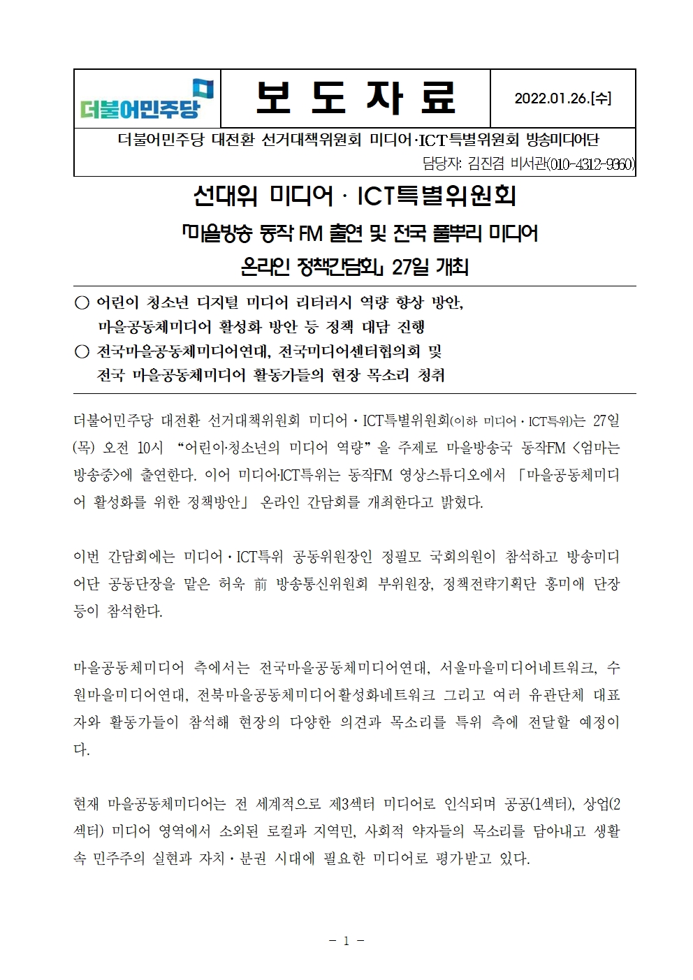 220126_보도자료_민주당_미디어ict특위,_풀뿌리_미디어_방송출연_및_온라인_정책간담회_27일_개최_사전.pdf