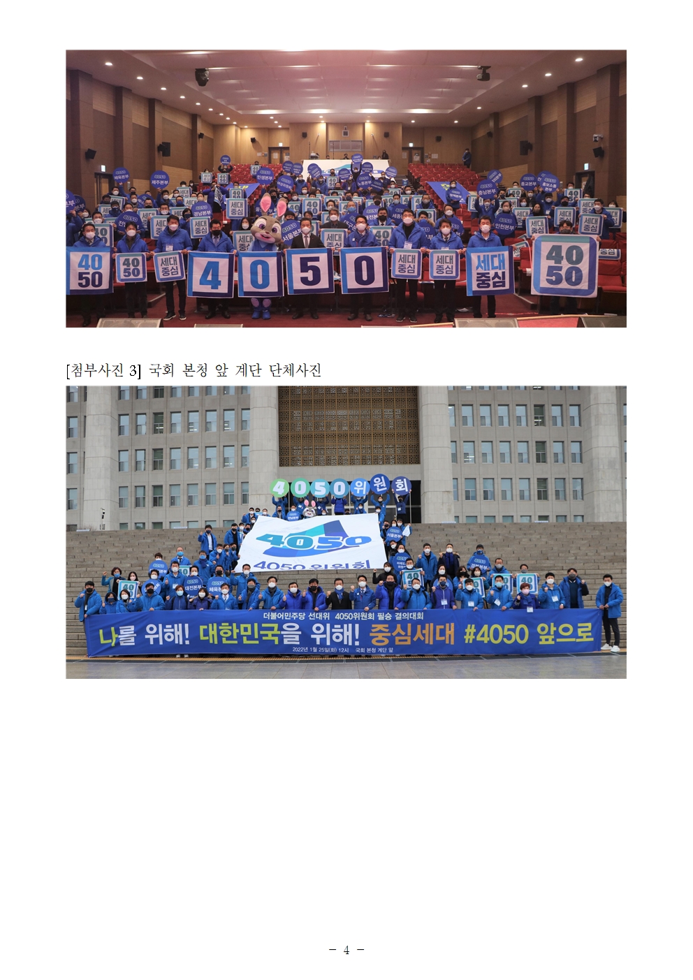 [보도자료] 더불어민주당 선대위 4050위원회 출범식 및 필승 결의대회 개최
