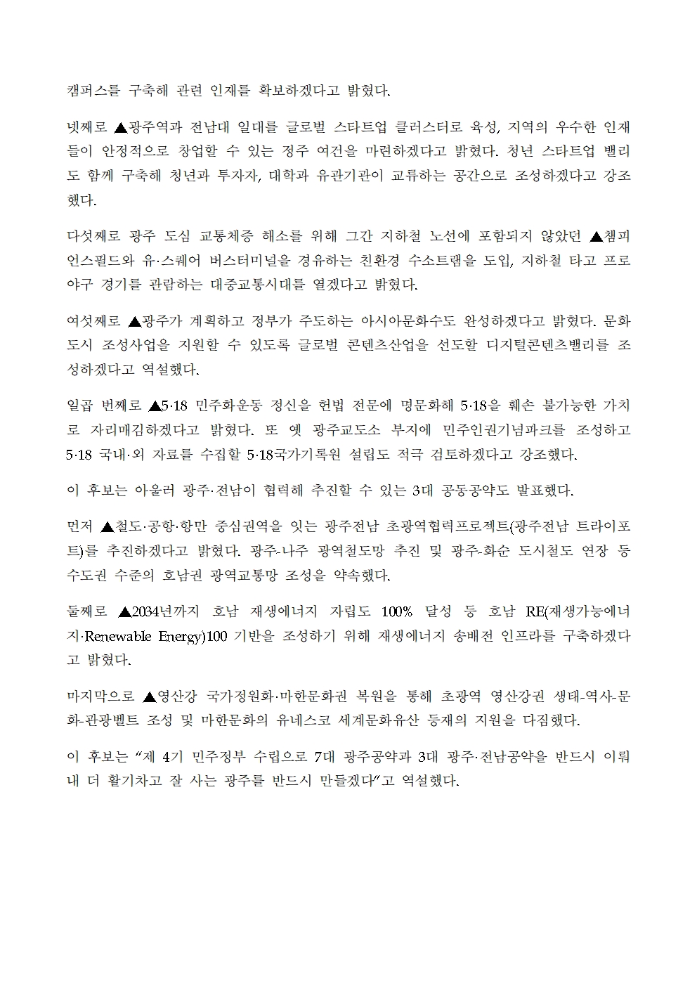 [보도자료] 더불어민주당 선대위 정책본부, 7대 광주 공약 및 3대 광주·전남 상생공약 발표