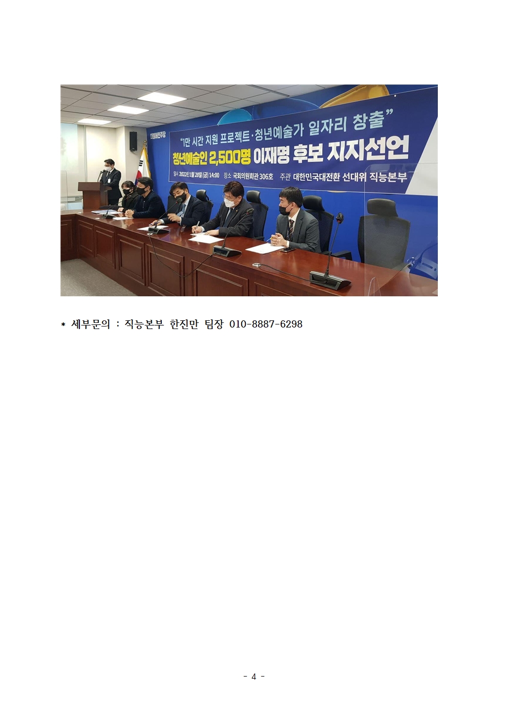 [보도자료] 더불어민주당 선대위 직능본부, 농민·예술단체 등 개혁시민그룹 대규모 지지선언