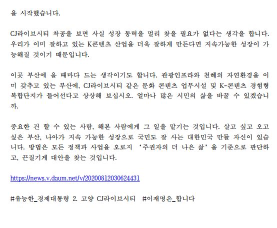[보도자료] 더불어민주당 선대위 현안대응TF, 이재명 후보 '유능한 경제대통령' 두 번째 시리즈 'CJ라이브시티' 성과 공개
