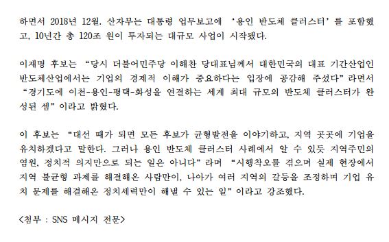 [보도자료] 더불어민주당 선대위 현안대응TF, 이재명 후보 '유능한 경제대통령' 세 번째 시리즈, '120조 원 규모 용인 반도체 클러스터' 성과 공개