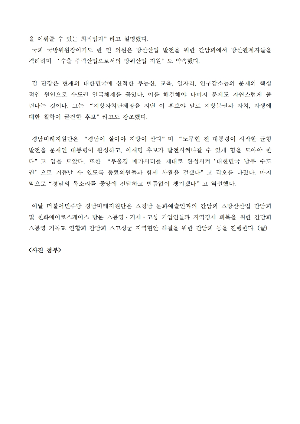 [보도자료] 더불어민주당 선대위 경남미래지원단, 경남 찾아 이재명 지지 호소