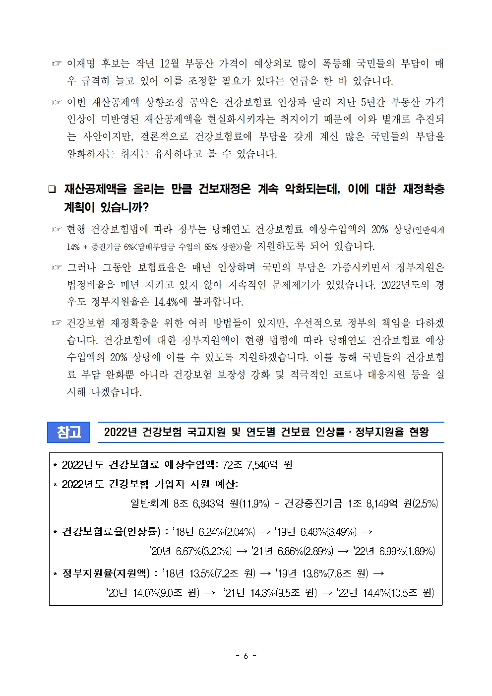 [보도자료] 더불어민주당 선대위 정책본부, '이재명은 합니다. 소확행 공약 시리즈 71' 건강보험료 재산공제액 기준 상향 공약 발표