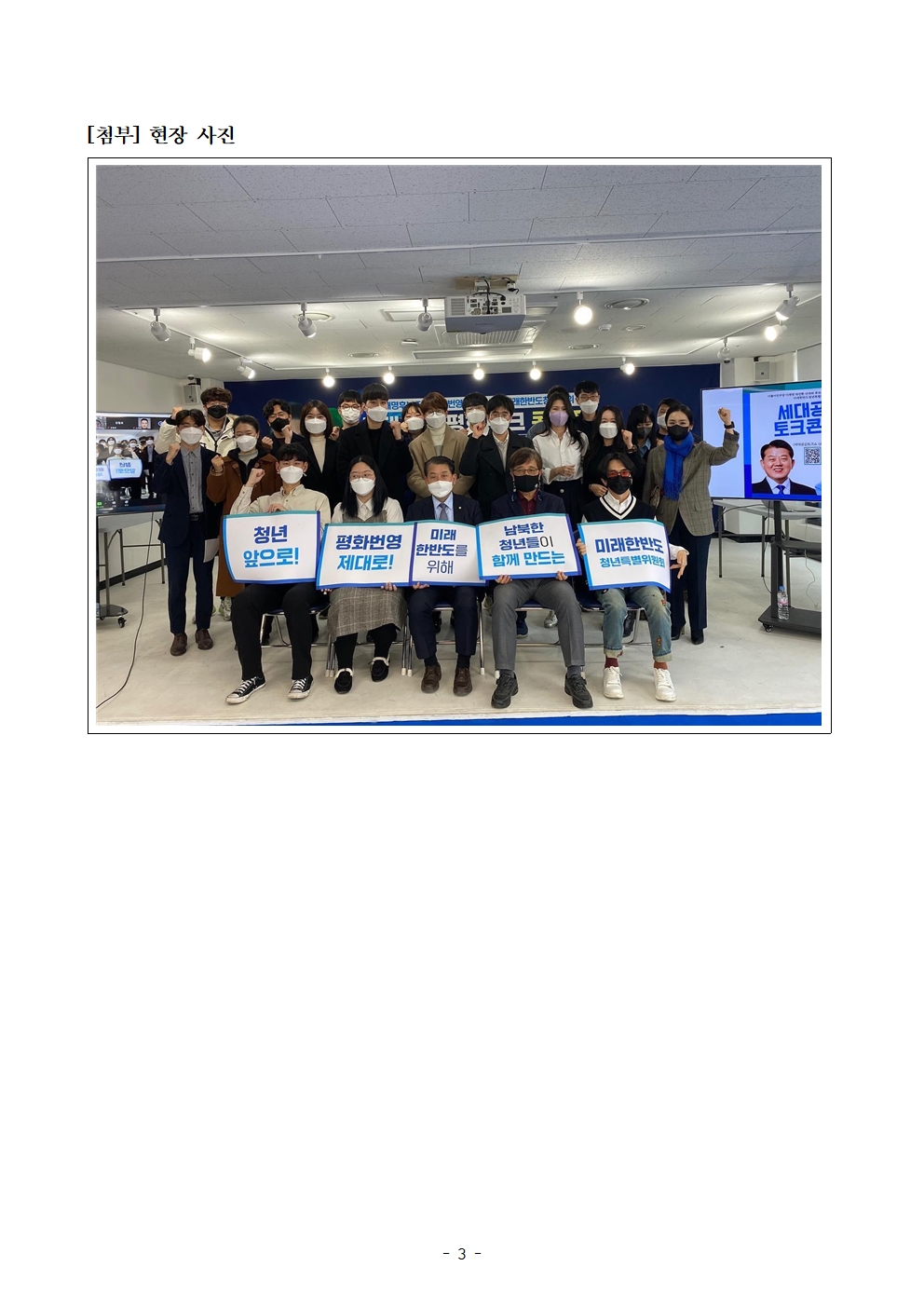 [보도자료] 더불어민주당 선대위 평화번영위원회, 미래한반도청년특위 세대공감 토크콘서트 개최
