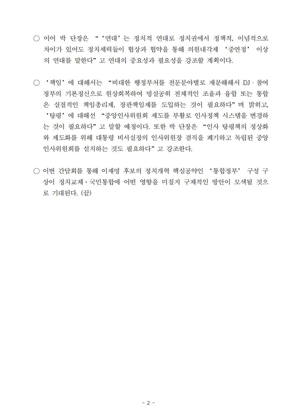 [보도자료] 더불어민주당 선대위 총괄특보단, '통합정부, 어떻게 할 것인가? 연대·책임·탕평' 간담회 개최