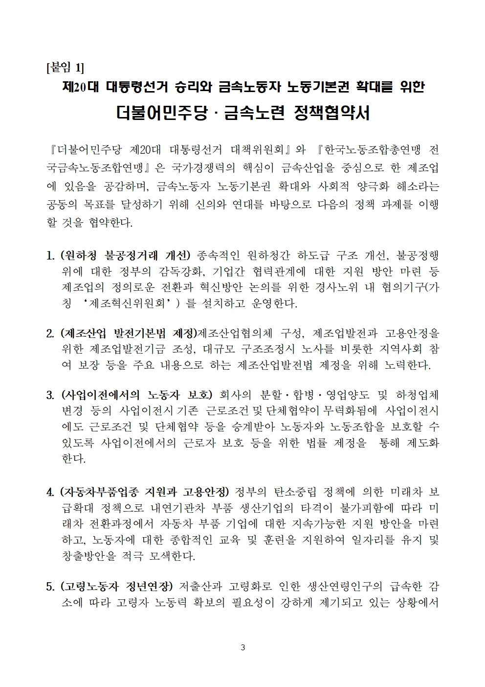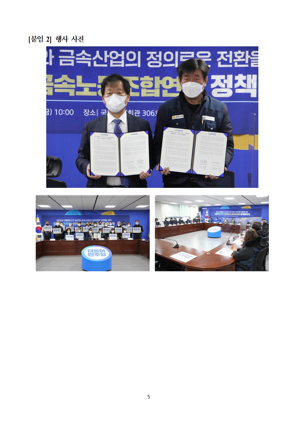 [보도자료] 더불어민주당 선대위 노동위원회, 전국금속노동조합연맹과 정책협약식 개최