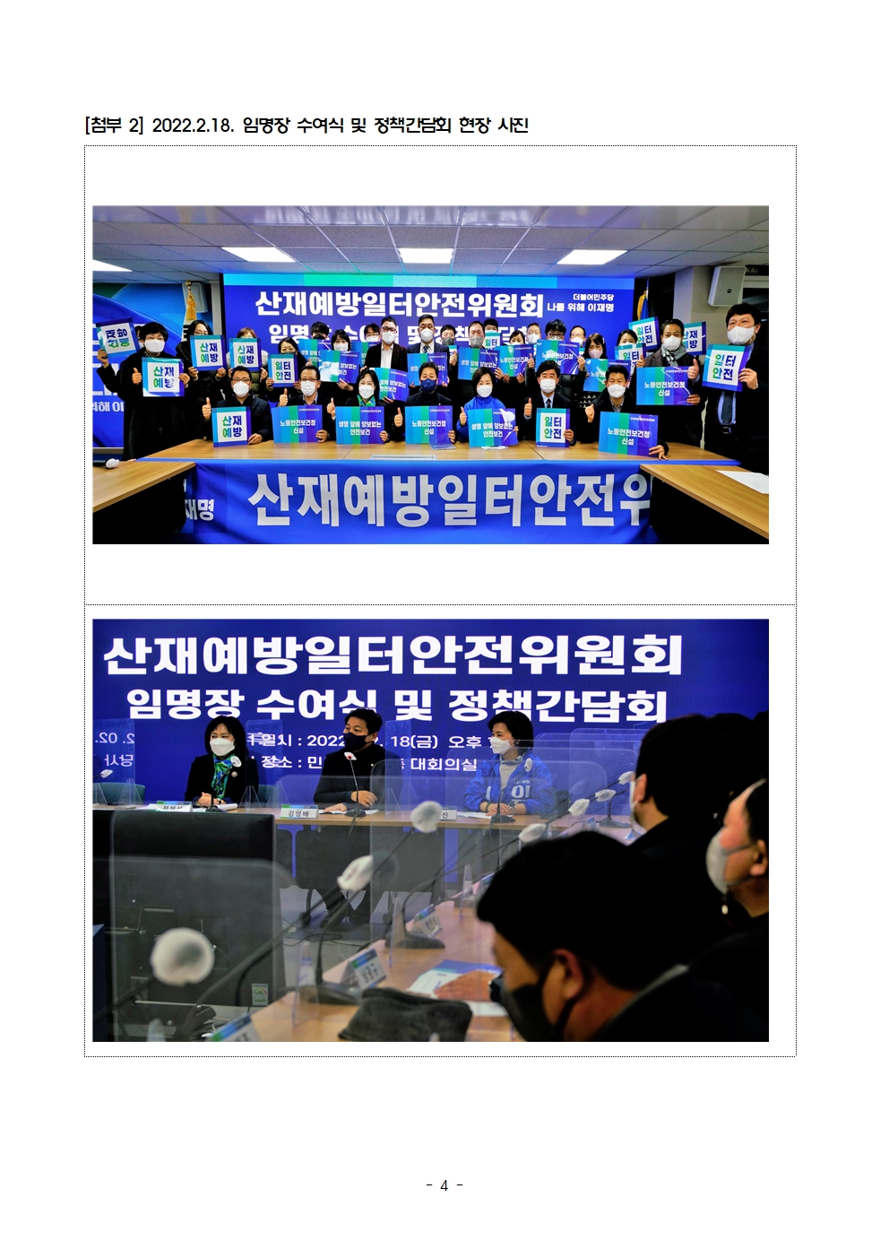 [보도자료] 더불어민주당 선대위 산재예방일터안전위원회, 임명장 수여식 및 정책간담회 개최
