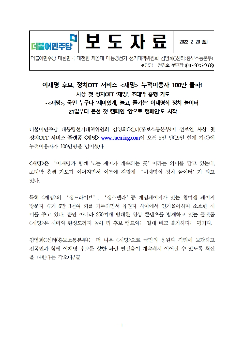 220220일_보도자료_선대위_김영희C센터_재밍_100만_돌파수정.pdf