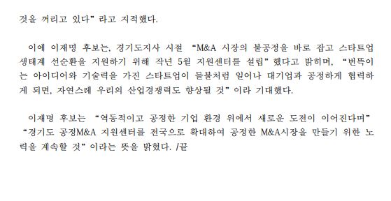 [보도자료] 더불어민주당 선대위 현안대응TF, 이재명 후보 '유능한 경제대통령' 열 번째 시리즈, '경기 공정M&A센터' 성과 소개