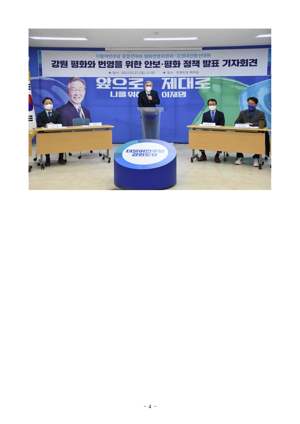[보도자료] 더불어민주당 선대위 평화번영위원회·강원선대위, 강원 평화와 번영을 위한 안보·평화 정책 발표 기자회견