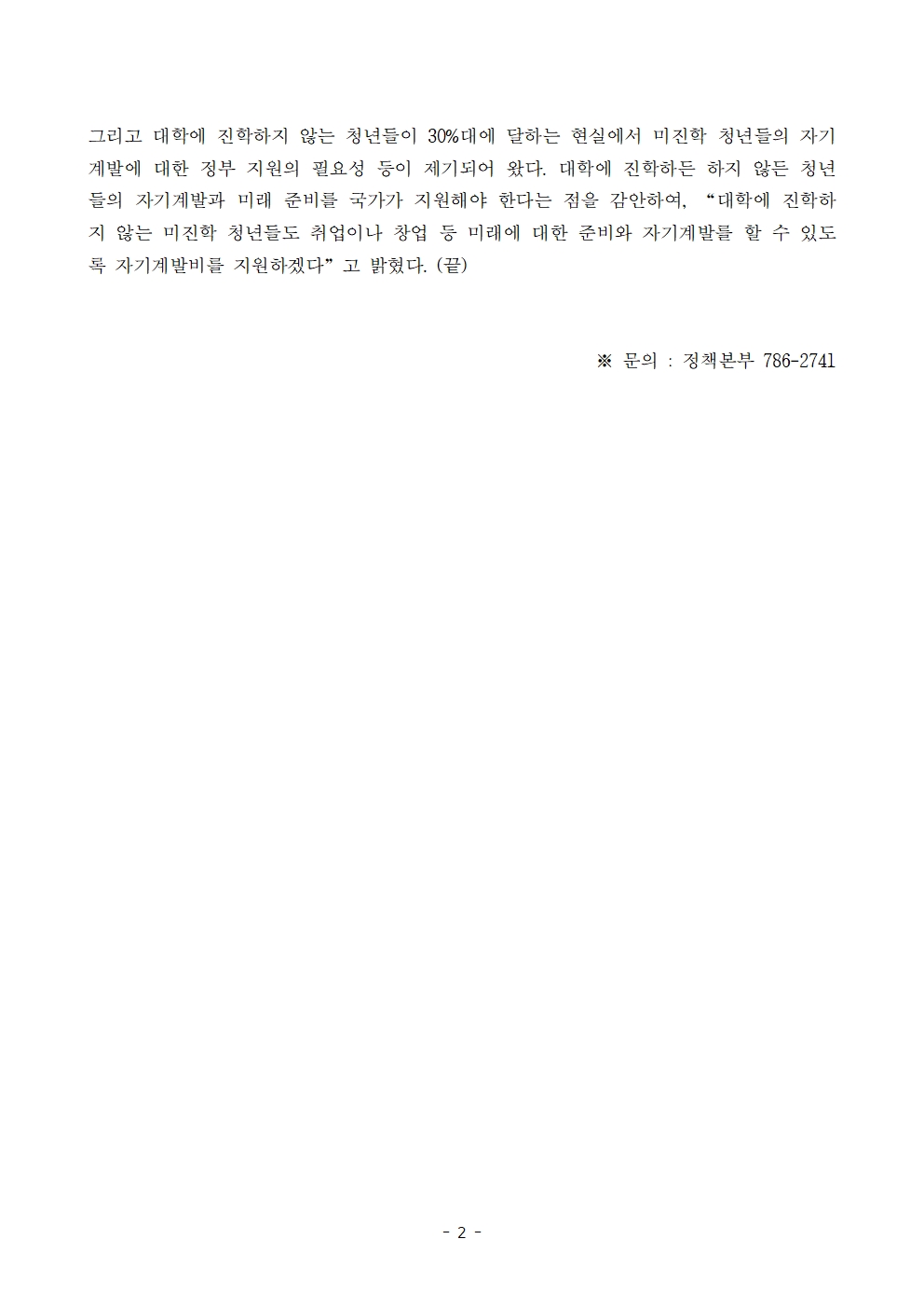 [보도자료] 더불어민주당 선대위 정책본부, 국가장학금 지원 규모 확대 및 대학 미진학 청년 자기계발비 지원 공약 발표