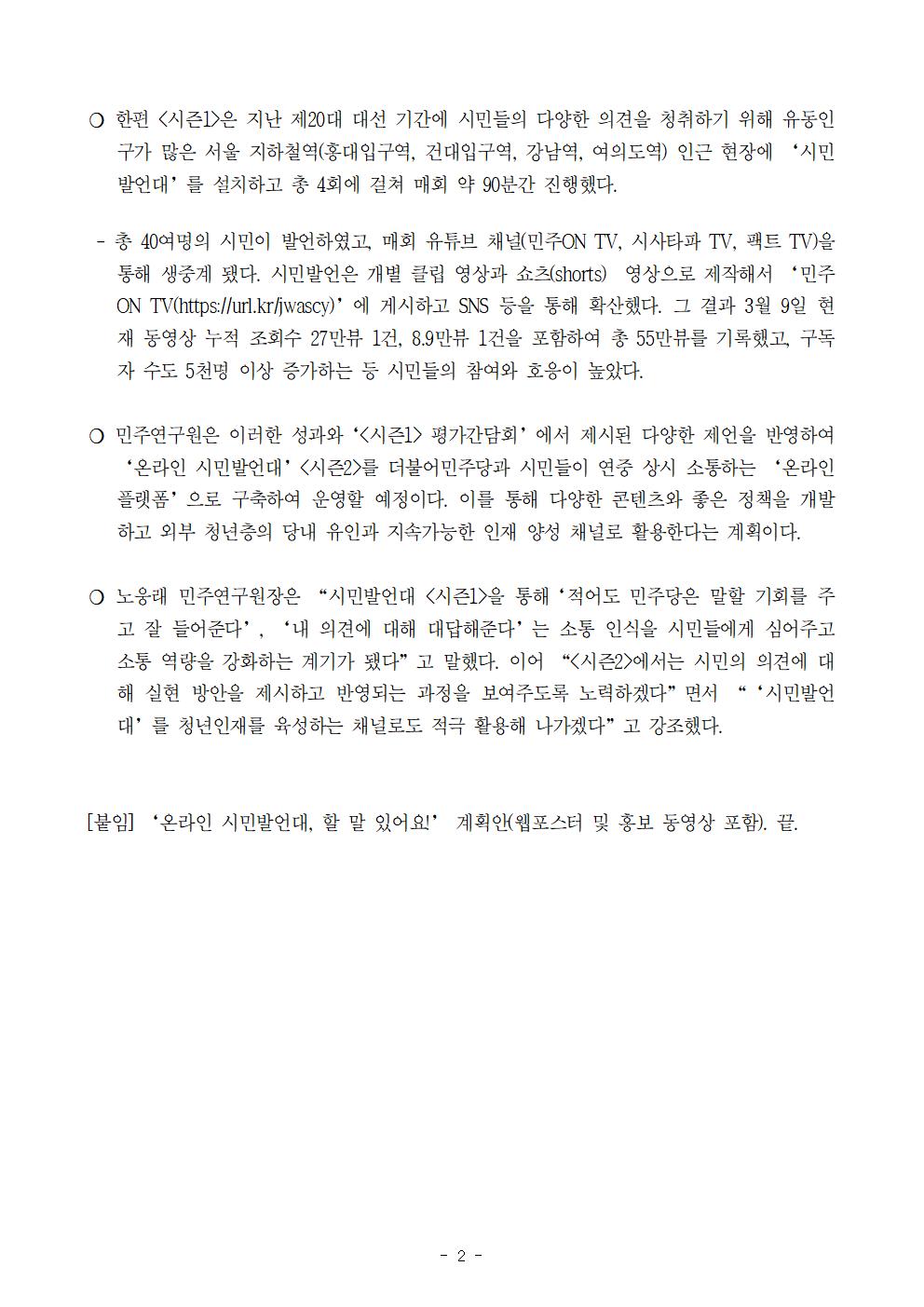 [보도자료] 더불어민주당 민주연구원, 시민발언대 캠페인 ‘시즌2’ 로 다시 시작