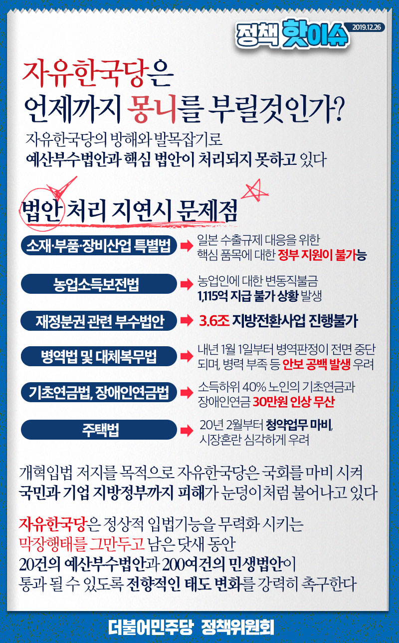 정책핫이슈 | 자유한국당은 언제까지 몽니를 부릴것인가?