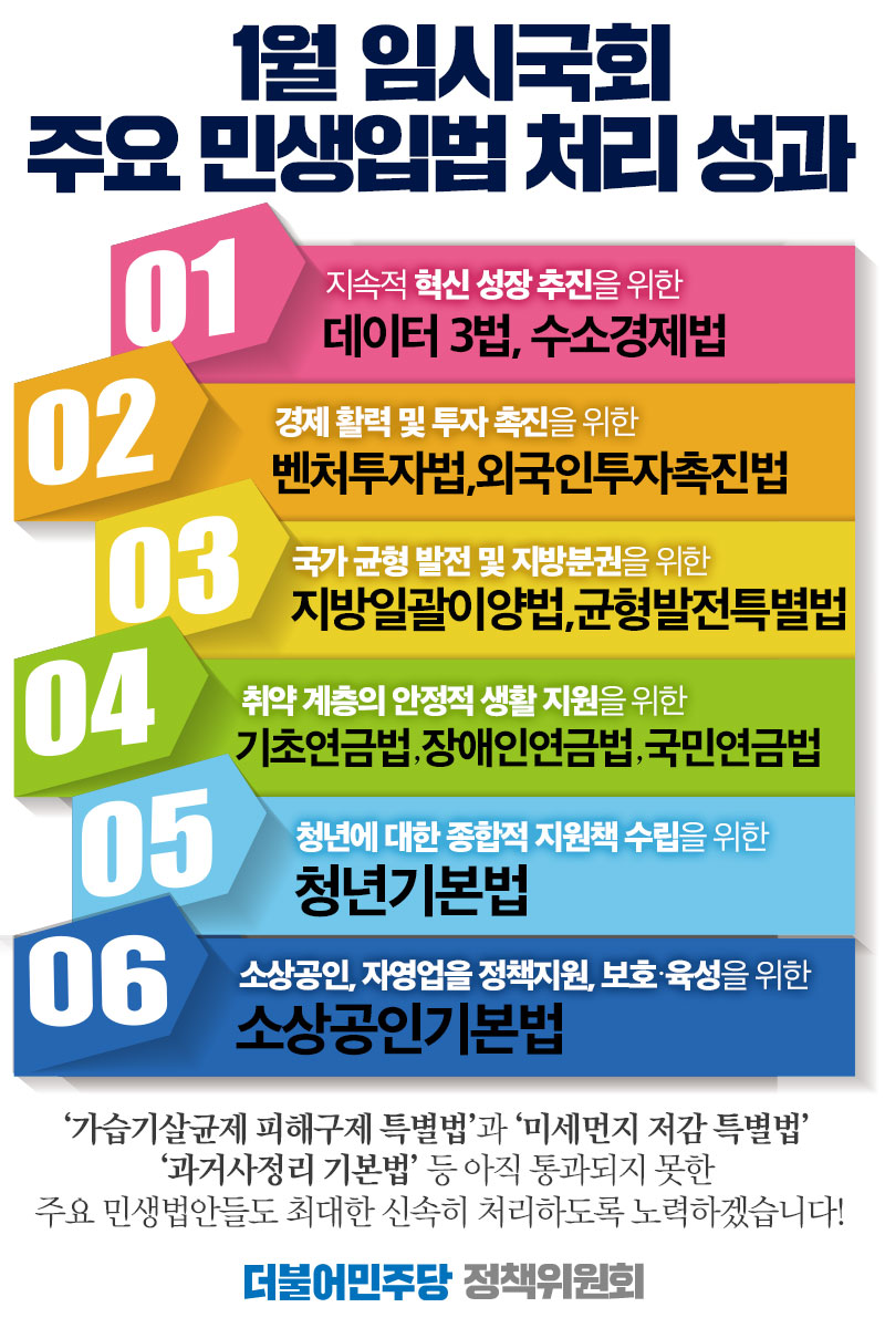 1월 임시국회 주요 민생입법 처리 성과를 소개합니다!