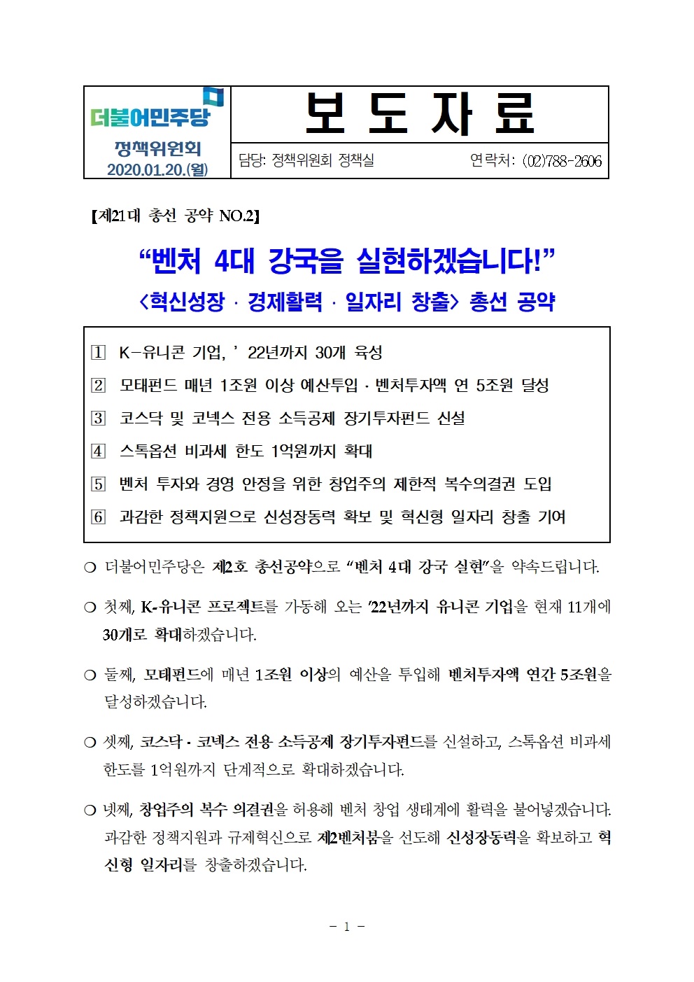 (보도자료)200120_총선공약_2호_벤처4강실현.hwp