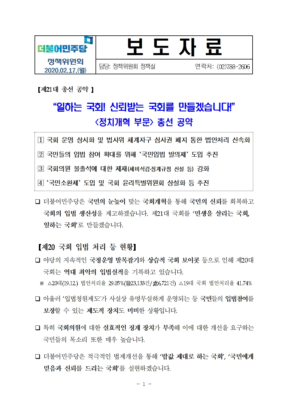 200217_보도자료(정책위)_일하는_국회_총선공약(최종).hwp