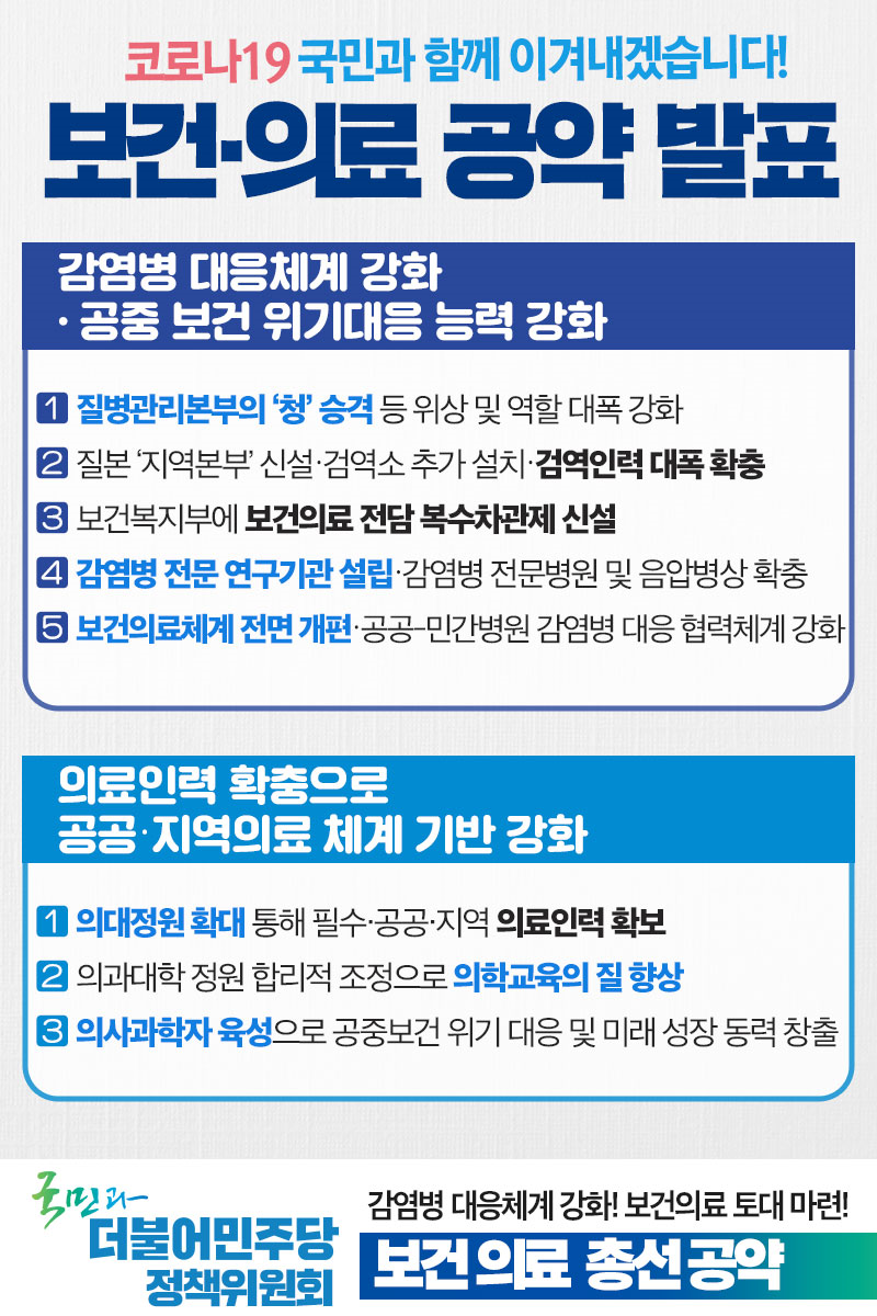 [총선 공약-보건의료] 감염병 대응체계를 강화하고 공중보건 위기대응 능력을 높이겠습니다.