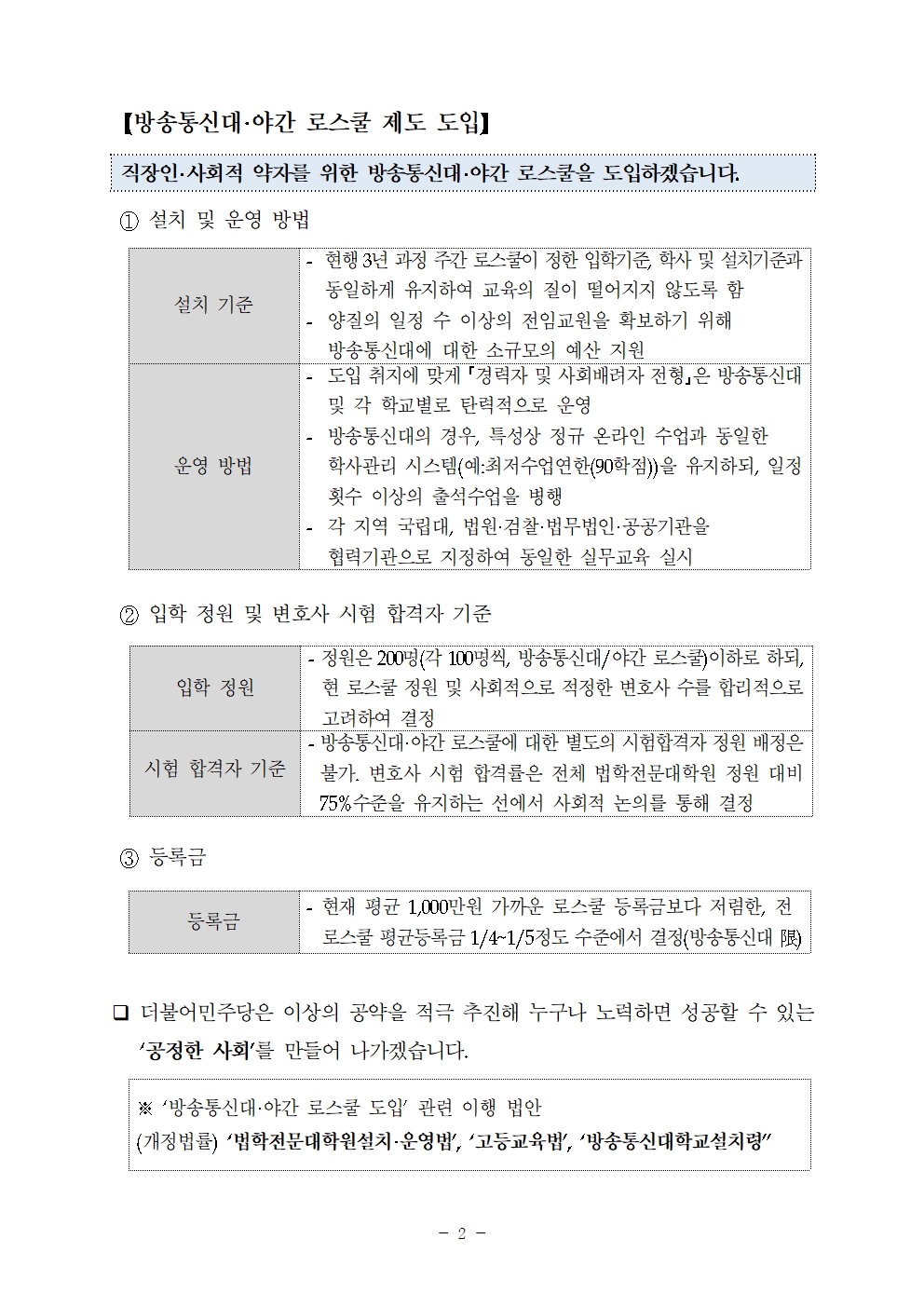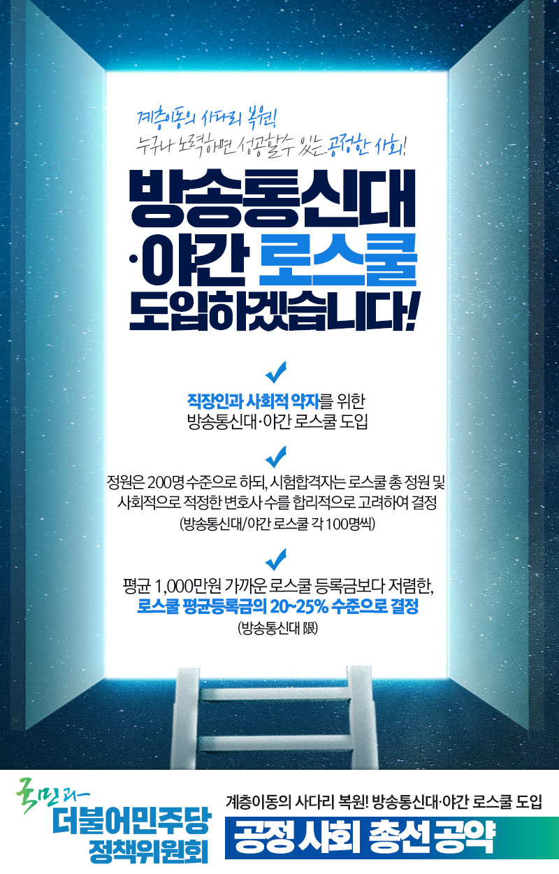 [총선 공약-공정사회] “계층이동의 사다리 복원, 방송통신대·야간 로스쿨을 도입하겠습니다!”