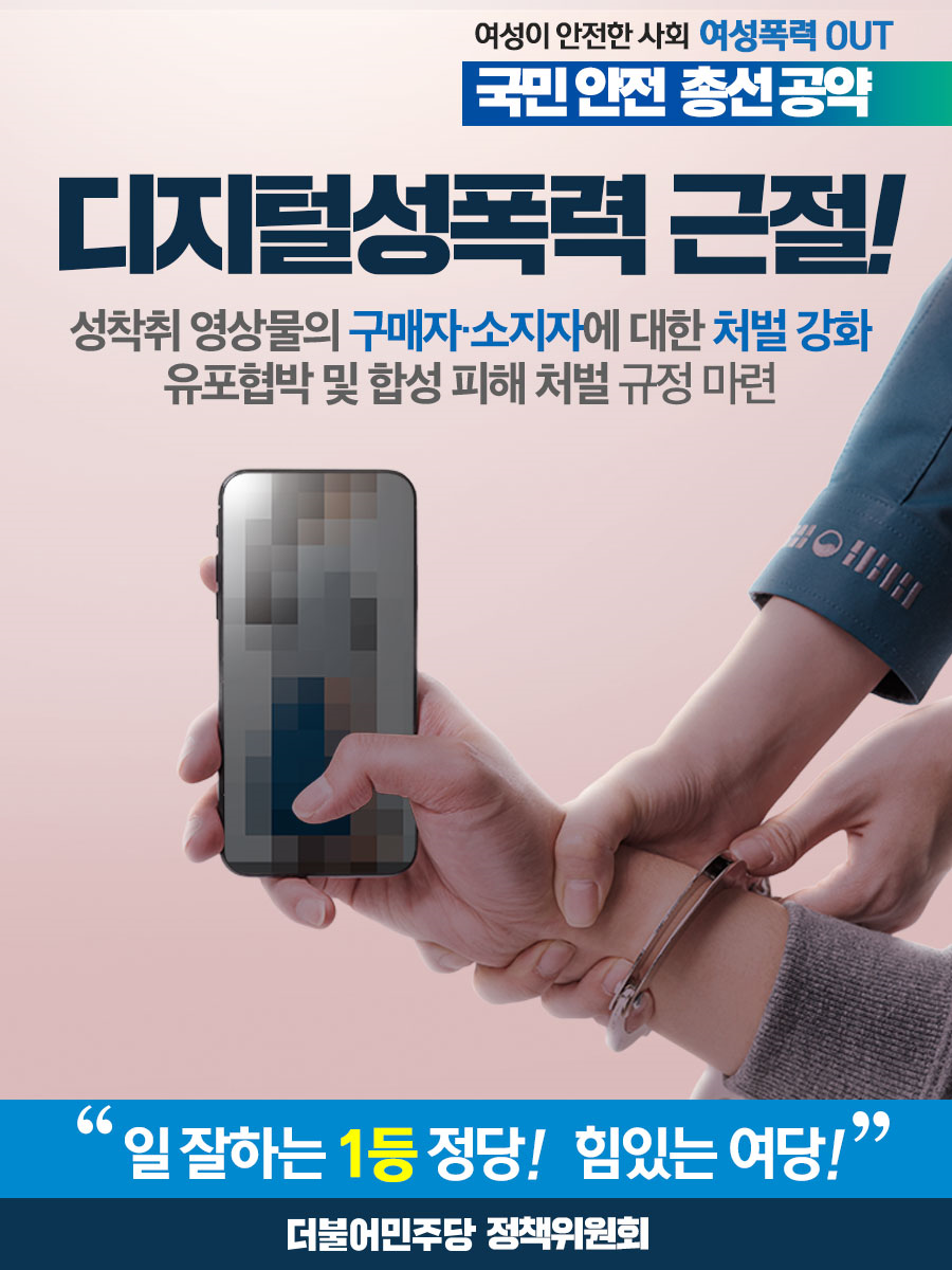 디지털성폭력 근절! 여성이 안전한 사회, 여성폭력 OUT : 국민 안전 총선 공약