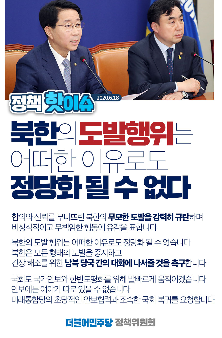 정책핫이슈|북한의 도발행위는 어떠한 이유로도 정당화 될 수 없다